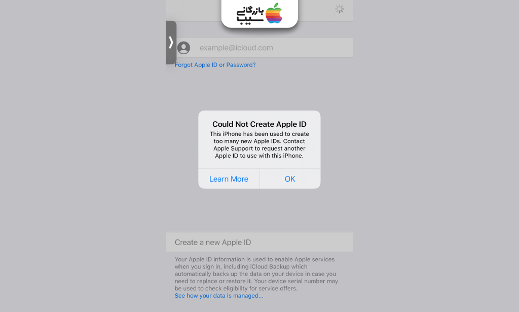 | خطای This Apple ID cannot be created | معمولاً به محدودیتهای منطقهای یا تلاشهای مکرر ناموفق مربوط میشود. صبر کردن یا تغییر روش ثبتنام راهحل رایج است. |