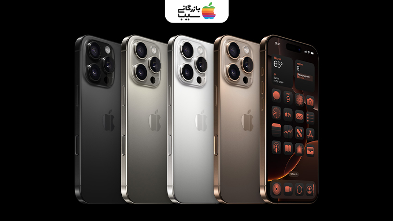 کپشن: آیفون ۱۶ پرو با چهار رنگ کلاسیک تیتانیومی حس استحکام و لوکسی را منتقل میکند.